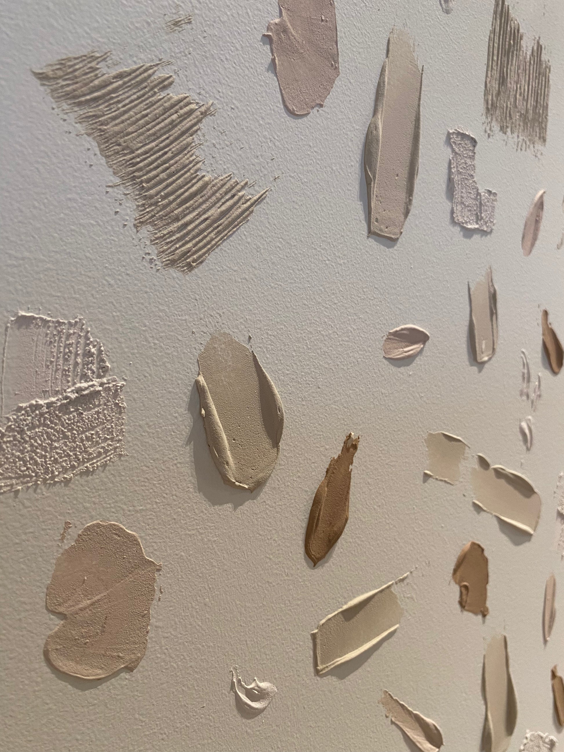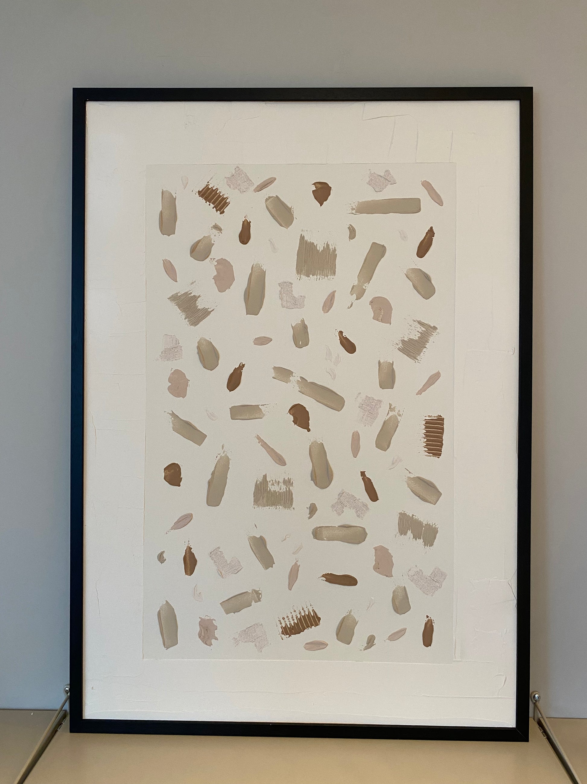 This original textured artwork is created on a wooden panel, featuring layered brushstrokes and organic marks in soft, earthy tones. Crafted using texture paste, acrylic paint, fine sand, and sculpted plaster, each element adds depth and contrast — forming a subtle rhythm across the surface.