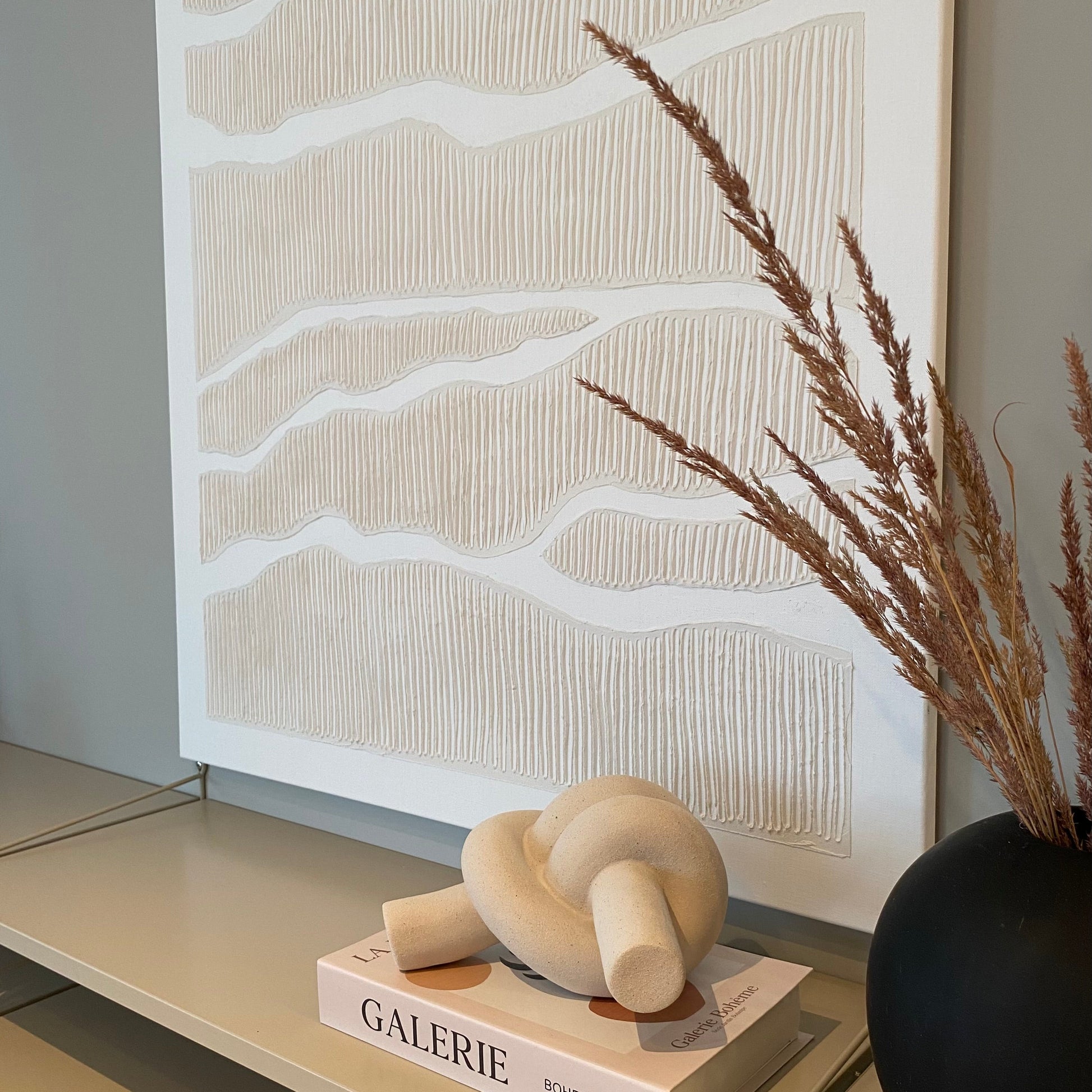 The light beige tones and delicate textures create a serene, Scandinavian aesthetic – perfect for contemporary homes or office spaces. Each piece is handmade and unique, offering a tactile and visually captivating experience.