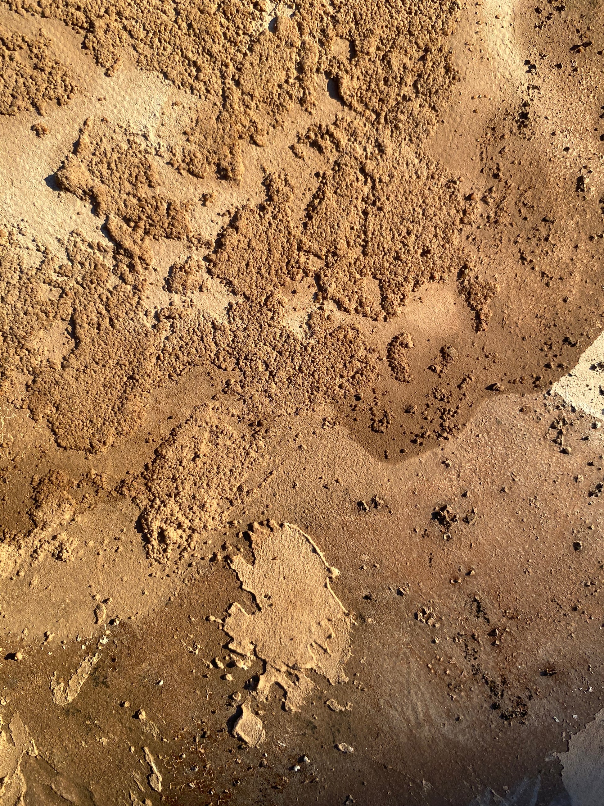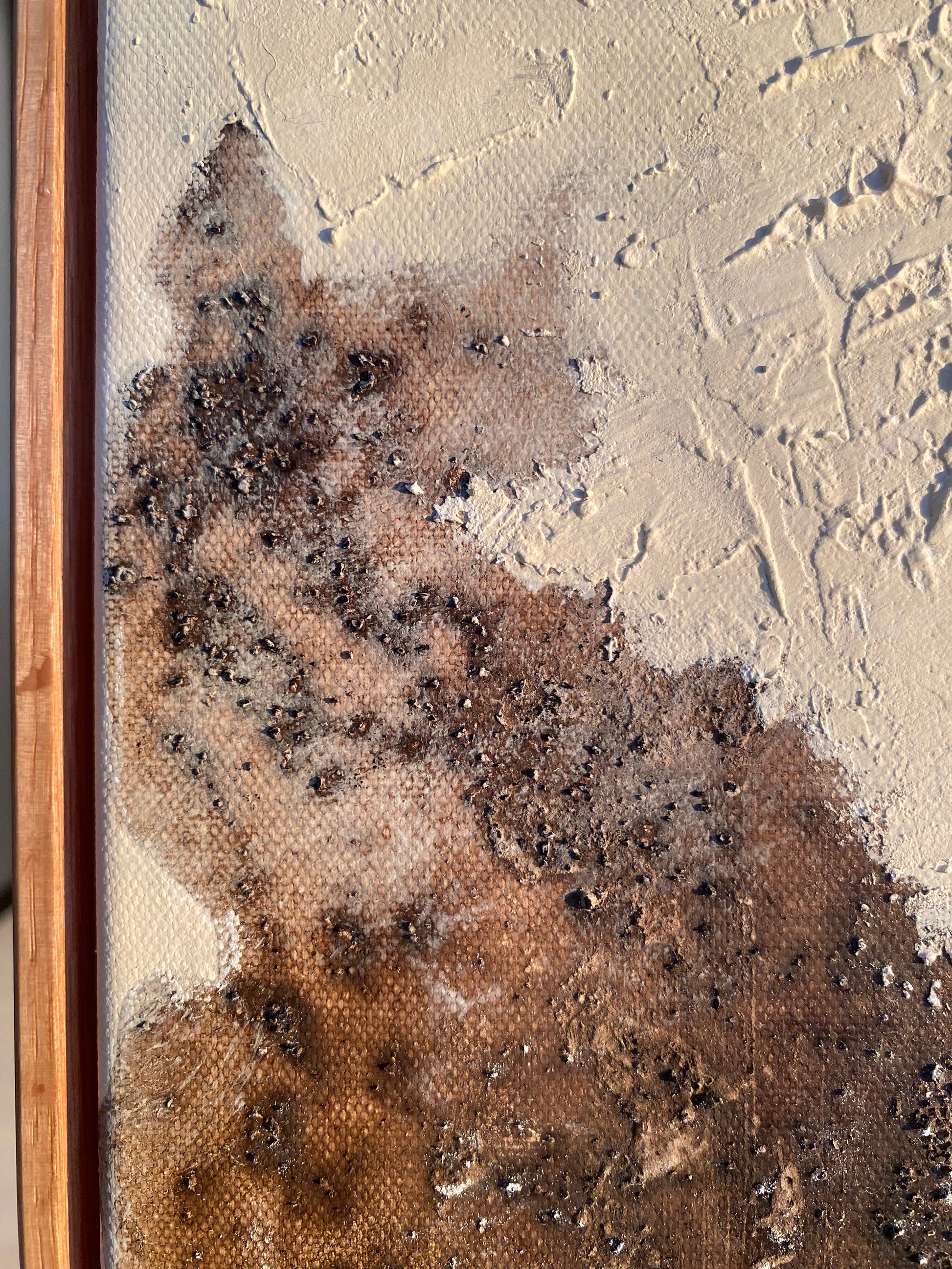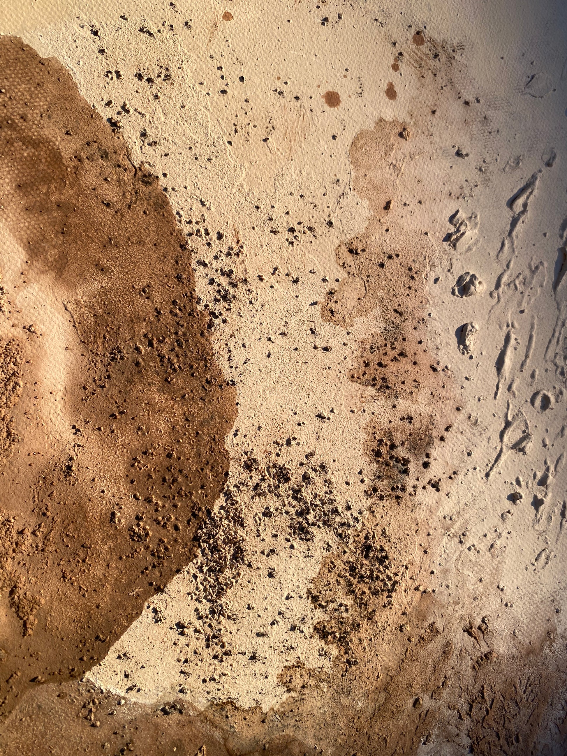 Materials: Canvas, acrylic paint, texture paste, soft pastels, coffee