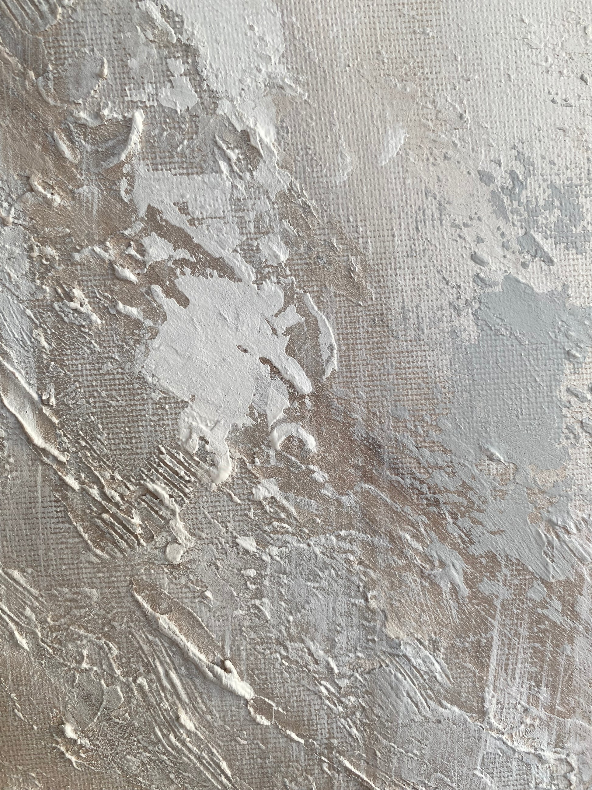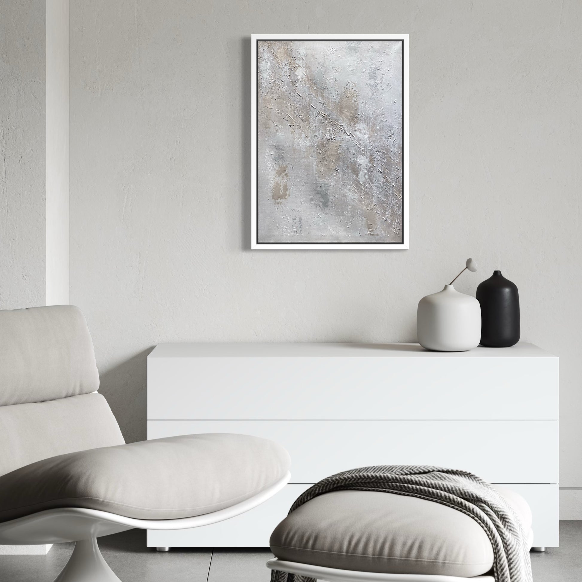 This original abstract painting is created on a 70 × 50 cm canvas using acrylics and textured techniques to form soft, mist-like movements across the surface. Gentle vertical flows and subtle tonal shifts reveal layered brushwork that adds a quiet sense of motion and depth.